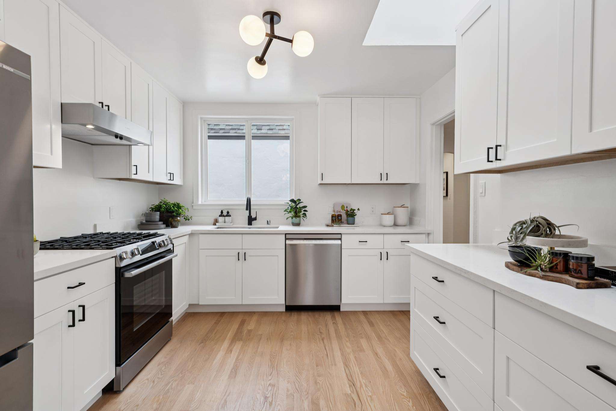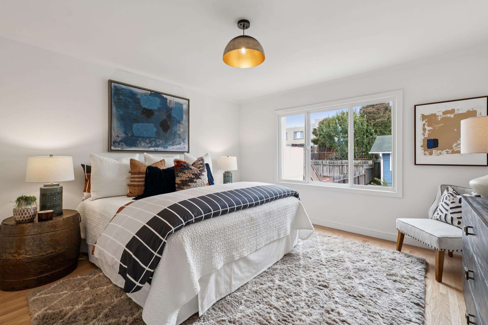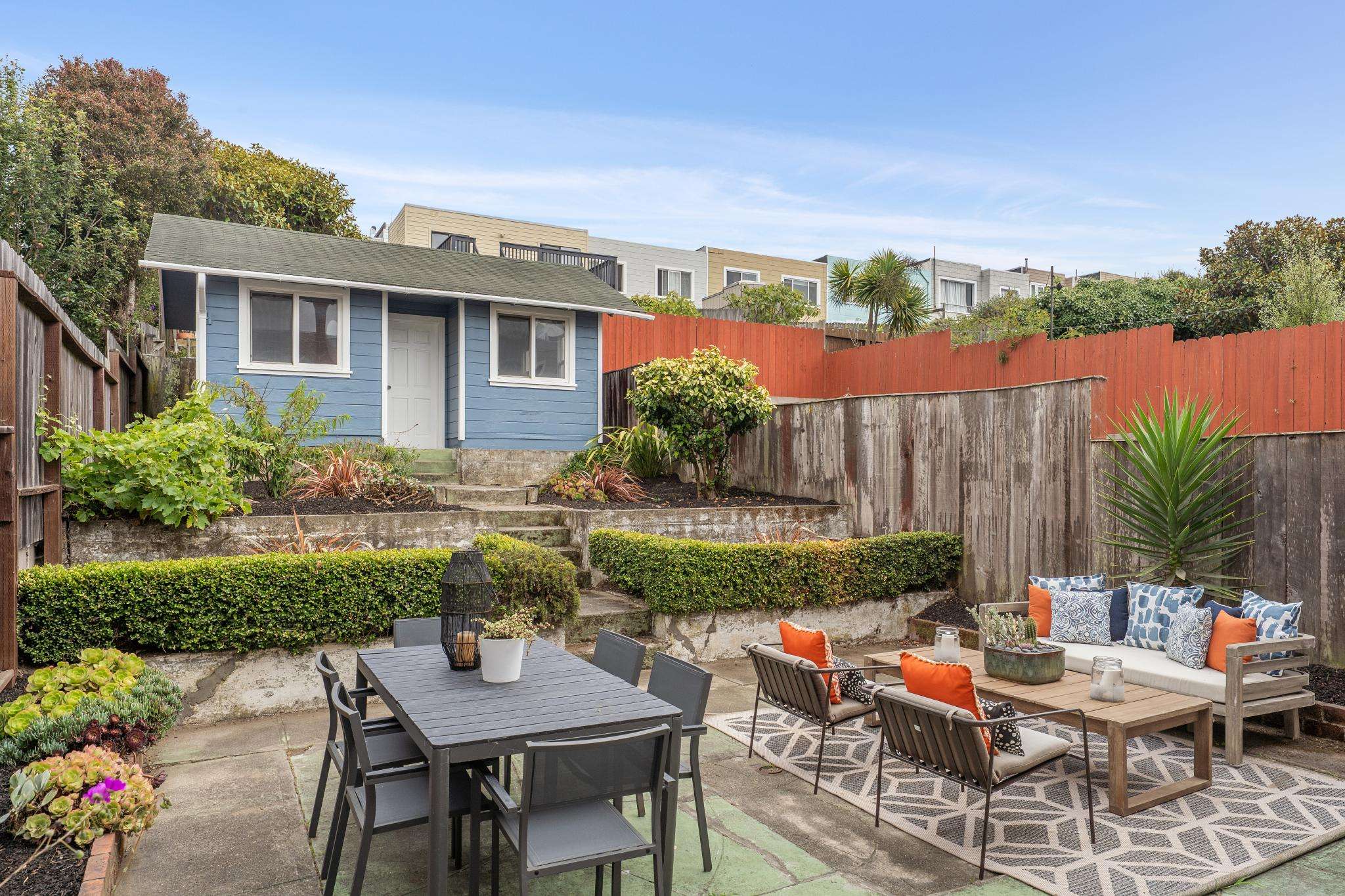 The beautifully landscaped backyard features a detached bonus space that could be used as a home office or artist studio. The garage features parking for one car along with laundry and ample storage plus expansion potential. The front driveway allows for parking an additional car. This convenient location places it within walking distance to Parkside and Sunset neighborhood restaurants and shops, as well as public transit.